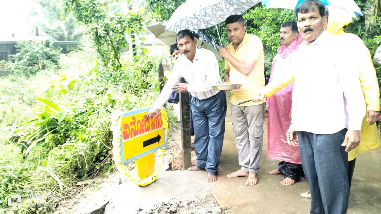 ಕಾರವಾರ-ಕಾರವಾರ ತಾಲ್ಲೂಕಿನ ಕಡವಾಡ ಗ್ರಾಮ ಪಂಚಾಯತ ವ್ಯಾಪ್ತಿಯಲ್ಲಿನ ವೀರ ಯೋಧ ಹುತಾತ್ಮ ಸ್ಮಾರಕಕ್ಕೆ ಹೋಗುವ ಹೋಗುವ ರಸ್ತೆಗೆ ನೂತನವಾಗಿ ವಿನೋದ ನಗರ ಎಂಬ ನಾಮಕರಣ ಮಾಡಿ ಕಡವಾಡ ಗ್ರಾಮ ಪಂಚಾಯತ ಅಧ್ಯಕ್ಷರಾದ ಆನಂದು ಆರ್ ನಾಯ್ಕ ಅವರು ನೂತನ ನಾಮಫಲಕಕ್ಕೆ ದೀಪ ಬೆಳಗಿಸುವ ಮೂಲಕ ಉದ್ಘಾಟಿಸಿ ಅವರು ವೀರ ಹುತಾತ್ಮ ಯೋಧ ವಿನೋದ ನಾಯ್ಕ ಅವರ ಸ್ಮಾರಕಕ್ಕೆ ಹೋಗುವ ರಸ್ತೆಗೆ ನೂತನವಾಗಿ ವಿನೋದ ನಗರ ಎಂಬ ನಾಮಕರಣ ಮಾಡಲಾಗಿದೆ. ಈ ಒಳ್ಳೆಯ ಕಾರ್ಯಕ್ರಮಕ್ಕೆ ಬಂದಂತಹ ಎಲ್ಲಾ ನಾಗರಿಕರಿಗೆ ಧ್ಯನವಾದಗಳು ಅರ್ಪಿಸುತ್ತೇನೆ. ಕಡವಾಡ ಗ್ರಾಮದಲ್ಲಿ ಜೀವ ಮಾನದಲ್ಲಿ ಇಂಥ ಮಹಾನ್ ಕಾರ್ಯಕ್ರಮ ಮಾಡಿದ ವೀರ ಹುತಾತ್ಮ ಸ್ಮಾರಕ ಅಡಿಗಲ್ಲು ಸಮಾರಂಭ ನಂತರ ನೂತನ ಸ್ಮಾರಕ ಉದ್ಘಾಟನೆ ಈಗ ರಸ್ತೆ ನಾಮಕರಣ ಇರಬಹುದು ನಮ್ಮ ಅಲ್ಪ ಅವಧಿಯಲ್ಲಿ ಇಂಥ ದೇಶ ಸೇವೆಯ ಮಹಾನ್ ಕಾರ್ಯಕ್ಕೆ ಚಾಲನೆ ಸಿಕ್ಕಿದ್ದು ನೀಜಕ್ಕೂ ಪುಣ್ಯ ಕೆಲಸ. ಮುಂದಿನ ದಿನಗಳಲ್ಲಿಯೂ ಊರಿನ ಜನರ ಸಲಹೆ ಸಹಕಾರದೊಂದಿಗೆ ಕಡವಾಡ ಗ್ರಾಮದ ಸರ್ವಾಂಗೀಣ ಅಭಿವೃದ್ಧಿಗೆ ಸಾಕಷ್ಟು ರೀತಿಯಲ್ಲೂ ಶ್ರಮಿಸುತ್ತೇನೆ ಎಂದರು. ಹೆಸ್ಕಾಂ ಗುತ್ತಿಗೆದಾರರಾದ ರಾಜೇಶ ಕೃಷ್ಣಾ ಭೋವಿ ಅವರ ನೇತೃತ್ವದಲ್ಲಿ ಗ್ರಾಮದ ನಾಗರಿಕರು ಸೇರಿ ನೂತನ ರಸ್ತೆಗೆ ವಿನೋದ ನಗರ ಎಂಬ ನಾಮಕರಣ ಮಾಡಬೇಕೆಂದು ಗ್ರಾ ಪಂ ಅಧ್ಯಕ್ಷರಾದ ಆನಂದು ಆರ್ ನಾಯ್ಕ ಅವರಿಗೆ ಮನವಿ ಸಲ್ಲಿಸಿದರು. ಹುತಾತ್ಮ ಯೋಧರಾದ ವಿನೋದ ನಾಯ್ಕ ಅವರ ಸುತ್ತಮುತ್ತಲಿನ ಪ್ರದೇಶಗಳಲ್ಲಿ ಸಾಕಷ್ಟು ಮನೆಗಳು ನಿರ್ಮಾಣ ಆಗಿವೆ. ಇನ್ನು ಕೆಲವು ನಾಗರಿಕರು ತಮ್ಮ ಮನೆಗಳು ನಿರ್ಮಾಣ ಮಾಡುವುದು ಇದೆ.ಅಷ್ಟೆಯಲ್ಲದೇ ದೇಶದ ಗಡಿಯಲ್ಲಿ ಉಗ್ರರೊಂದಿಗೆ ಹೋರಾಡುತ್ತಿದ್ದ ವೇಳೆ ವೀರ ಮರಣವನ್ನಪ್ಪಿದ್ದ ವೀರ ಹುತಾತ್ಮ ಲ್ಯಾನ್ಸ್ ನಾಯಕ ವಿನೋದ ನಾಯ್ಕ ಸ್ಮಾರಕ ಈ ಭಾಗದ ಭೂ ಮಾತೆಯ ಒಡಲಿನಲ್ಲಿ ನಿರ್ಮಾಣವಾಗಿದೆ. ಈ ಹುತಾತ್ಮ ಯೋಧನ ಉಸಿರು ಸ್ಮಾರಕದಲ್ಲಿ ಚಿರಾಯು ಆಗಿ ಉಳಿದಿದೆ. ದೇಶಕ್ಕೆ ಸಲ್ಲಿಸಿದ ಸೇವೆ ಶೌರ್ಯ ತ್ಯಾಗ ಬಲಿದಾನ ಕಣಗಳಲ್ಲಿ ದೇಶ ಪ್ರೇಮದ ಸಂಕೇತವಾಗಿದ್ದು . ಮತ್ತು ಸಾಕಷ್ಟು ಈ ಭಾಗದ ನಾಗರಿಕರ ವಿನೋದ ನಗರ ಎಂಬ ನಾಮಕರಣ ಮಾಡಬೇಕೆಂದು ಅಭಿಲಾಷೆ ಆಗಿತ್ತು ಎಂದು ನಾಗರಿಕರು ಹೇಳಿದ್ದಾರೆ.