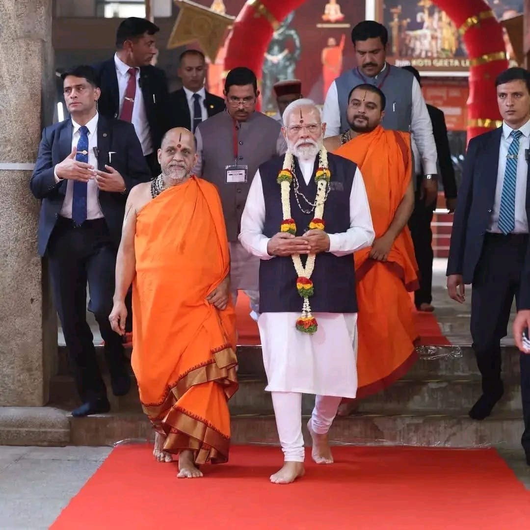 ಕಾರ್ಯಕ್ರಮದಲ್ಲಿ ವಿಶೇಷ ಗಮನ ಸೆಳೆದದ್ದು—ಪರ್ಯಾಯ ಪುತ್ತಿಗೆ ಮಠದ ಶ್ರೀ ಸುಗುಣೇಂದ್ರ ತೀರ್ಥ ಸ್ವಾಮೀಜಿಯವರು ಪ್ರಧಾನಿ ಮೋದಿ ಅವರಿಗೆ ಪ್ರದಾನಿಸಿದ ‘ಭಾರತ ಭಾಗ್ಯವಿದಾತ’ ಗೌರವ. ಸಂಸ್ಕೃತ ಶ್ಲೋಕಗಳ ಮೂಲಕ ಮೋದಿಯವರ ನಾಯಕತ್ವ, ವಿಶೇಷವಾಗಿ ಅಯೋಧ್ಯಾದ ರಾಮ ಮಂದಿರ ನಿರ್ಮಾಣ ಹಾಗೂ ಧಾರ್ಮಿಕ ಪರಂಪರೆಗಳ ರಕ್ಷಣೆಯಲ್ಲಿ ಅವರ ಪಾತ್ರವನ್ನು ಸ್ವಾಮೀಜಿಯವರು ಪ್ರಶಂಸಿಸಿದರು. ಶಾಲು, ಶ್ರೀಕೃಷ್ಣನ ಚಿತ್ರ ಹಾಗೂ ಗೀತಾ ಗ್ರಂಥಗಳನ್ನು ಪ್ರಧಾನಮಂತ್ರಿಗೆ ಗೌರವ ಸೂಚಕವಾಗಿ ಅರ್ಪಿಸಲಾಯಿತು.