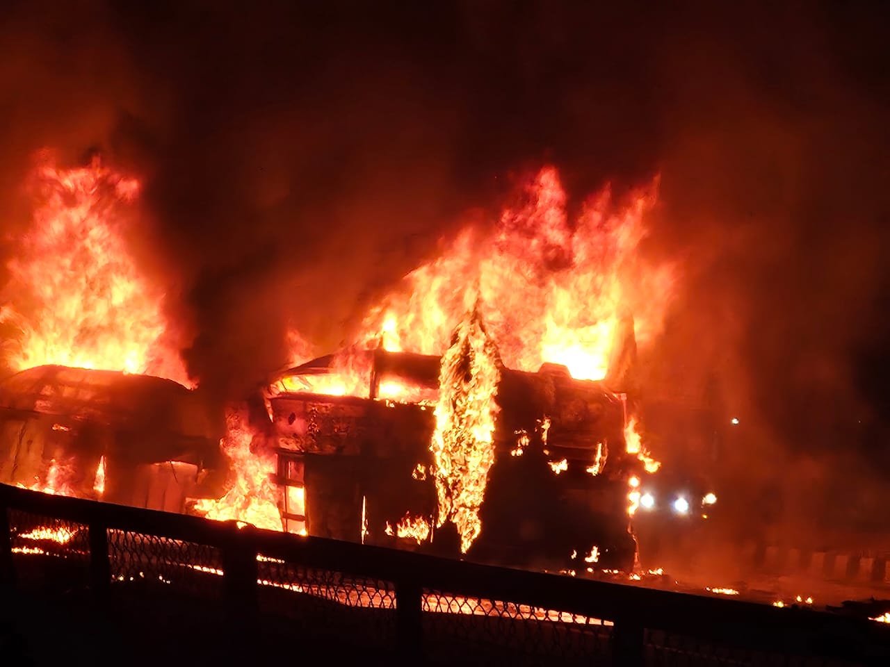 ಪ್ರಾಥಮಿಕ ಮಾಹಿತಿಯ ಪ್ರಕಾರ, ಎದುರಿನಿಂದ ಬರುತ್ತಿದ್ದ ಲಾರಿಯೊಂದು ರಸ್ತೆ ವಿಭಜಕವನ್ನು ದಾಟಿ ಬಸ್ಗೆ ಡಿಕ್ಕಿ ಹೊಡೆದಿದೆ. ಡಿಕ್ಕಿಯ ತೀವ್ರತೆಯಿಂದ ಬಸ್ನಲ್ಲಿ ತಕ್ಷಣವೇ ಬೆಂಕಿ ಕಾಣಿಸಿಕೊಂಡು ಕೆಲವೇ ನಿಮಿಷಗಳಲ್ಲಿ ಸಂಪೂರ್ಣವಾಗಿ ಬೆಂಕಿಗಾಹುತಿಯಾಗಿದೆ.